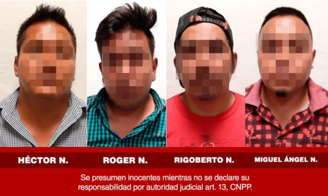 Por estos hechos, los oficiales procedieron al aseguramiento de quienes dijeron llamarse Héctor N., Roger N., Rigoberto N., y Miguel Ángel N., por estar ante la probable comisión de un delito.