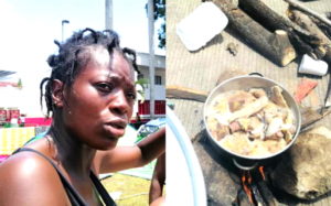 La mujer oriunda de Angola dio a conocer que su único alimento será huesos de res hervidos, los cuales preparó en su cocina improvisada hecha de piedras y palos. Ese será su único alimento para poder mantenerse en las afueras del INM Chiapas.