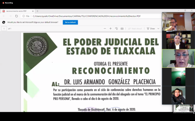 Así lo manifestó, al dictar la conferencia denominada “El principio pro persona”, como parte del ciclo de videoconferencias denominado “Derechos Humanos en la Función Judicial”, que es organizado por el Tribunal Superior de Justicia del Estado (TSJE) a través del Instituto de Especialización Judicial (IEJTlax).