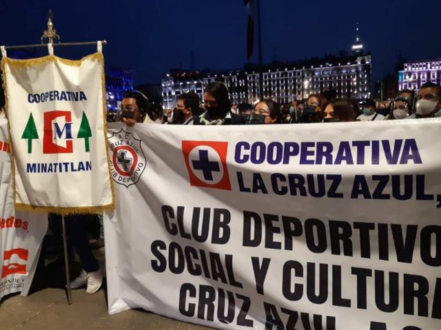 Se manifiestan integrantes de la Cooperativa La Cruz Azul en Zócalo de CDMX