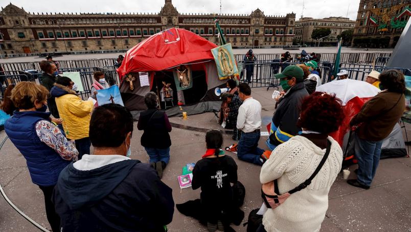 Los opositores ultraconservadores del presidente mexicano a quien acusan de “comunista” residen en 300 casas de campaña, donde disponen de una capilla a la que acuden a rezar para pedir una intervención divina en Palacio Nacional que propicie la salida de AMLO, según recupera la agencia EFE entre los testimonios.