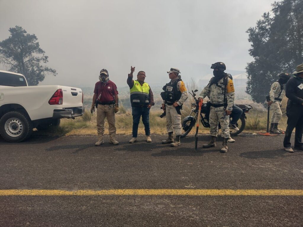 El incendio abarca territorio de los municipios de Santa María Tocatlán, Terrenate y Huamantla, donde labora personal de la Coordinación Estatal de Protección Civil (CEPC), Comisión Nacional Forestal (Conafor), Guardia Nacional, Secretaría de Medio Ambiente y el Cuerpo de Bomberos del estado, así como corporaciones municipales de Protección Civil y de emergencia.