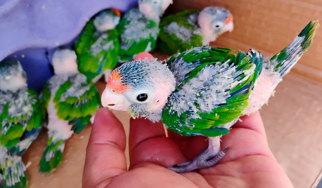 Profepa asegura 12 polluelos de perico frente naranja en Oaxaca