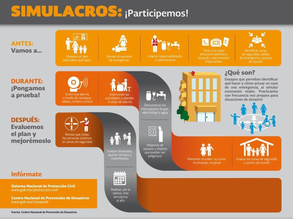 Por ello, recomendó a la población que está interesada en participar en el próximo simulacro que participe con seriedad y compromiso, como si fuera una emergencia real, pues “así mejoramos la preparación individual y colectiva, y fomentamos la cultura de protección civil en hogares, escuelas, oficinas y espacios públicos”.