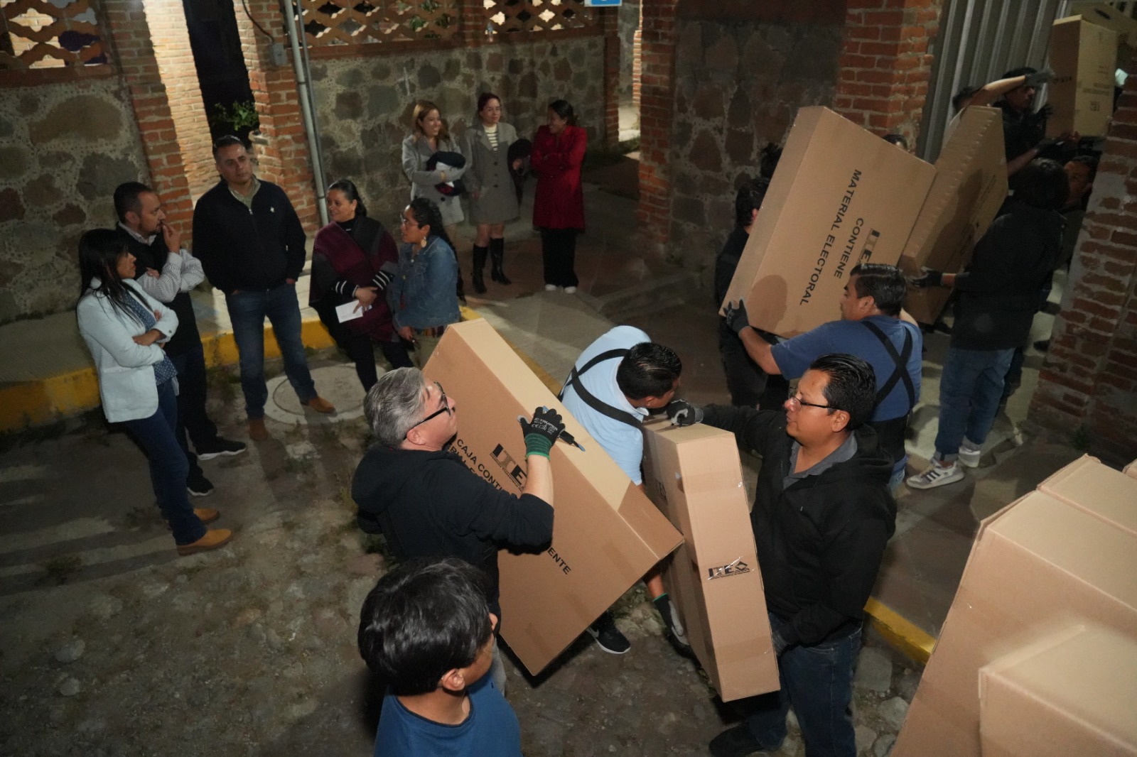 Mediante dos cargamentos, el Consejero Presidente y las los Consejeros Electorales recibieron 2 mil 550 cajas paquete electoral, 1,700 etiquetas para identificación, 850 cajas contenedoras de material, 1,700 urnas transparentes, 3,400 mamparas especiales y 1,700 cintas de seguridad.