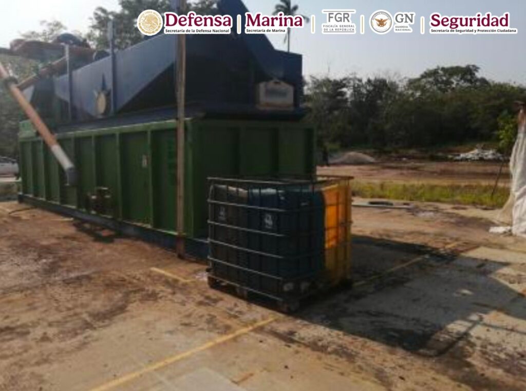 En otro inmueble en la misma ranchería se aseguró una máquina procesadora de petróleo y tres presas de crudo, donde se separa aceite y petróleo.