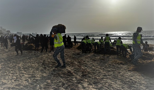 La Guardia Nacional activó el Plan DN-III-E en el estado de Quintana Roo, para colaborar en el retiro de sargazo en las playas de Cancún.