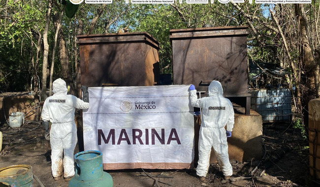 En una acción encabezada por elementos de la Secretaría de Marina (Semar) a través de la Armada de México, en coordinación con la Fiscalía General de la República (FGR), Secretaría de la Defensa Nacional (Defensa), Guardia Nacional (GN) y Secretaría de Seguridad y Protección Ciudadana (SSPC), localizaron y neutralizaron un laboratorio clandestino empleado para la elaboración de sustancias ilícitas, donde se aseguraron aproximadamente 12.8 toneladas de presunta metanfetamina en el municipio de San Blas, en Nayarit.