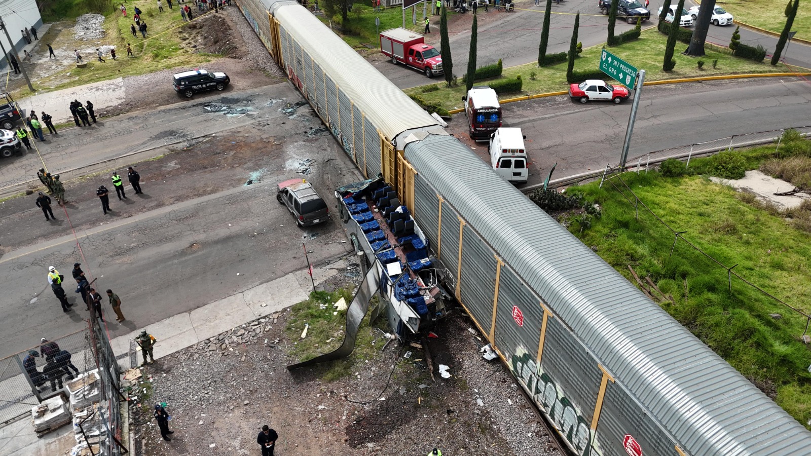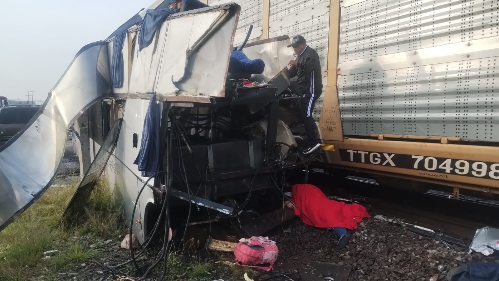 Tren arrolla a autobús y deja 8 muertos en el Edoméx