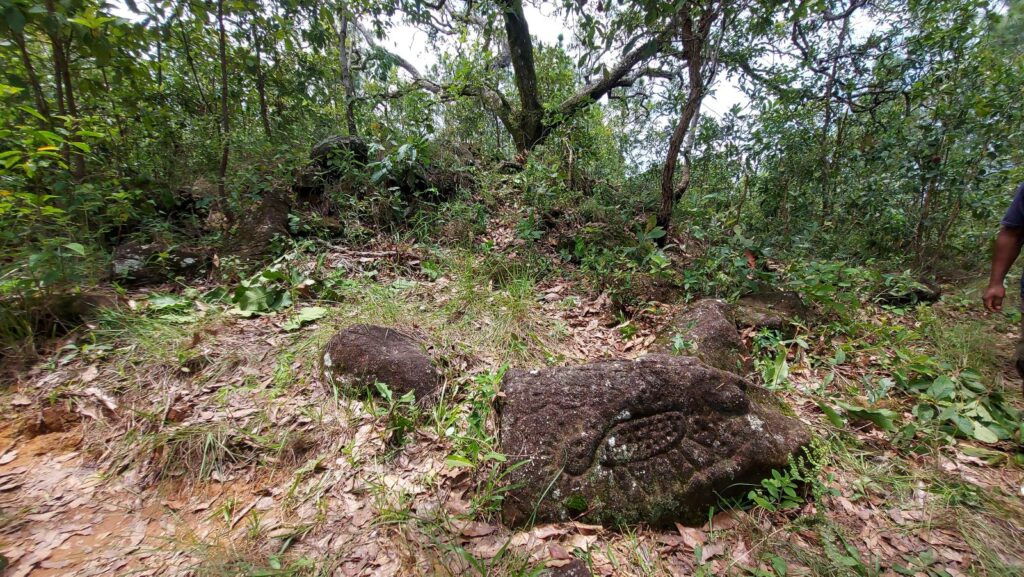De la inspección arqueológica también sobresale el registro de un par de sitios con arquitectura monumental. En el primero, San Cristóbal, además de montículos, se observan estelas lisas de granito –de hasta 2 metros de alto– y piedras grabadas con espirales y círculos. En el segundo, Guadalupe Mano de León, se localizó una plataforma con restos de muros y un hacha de piedra.