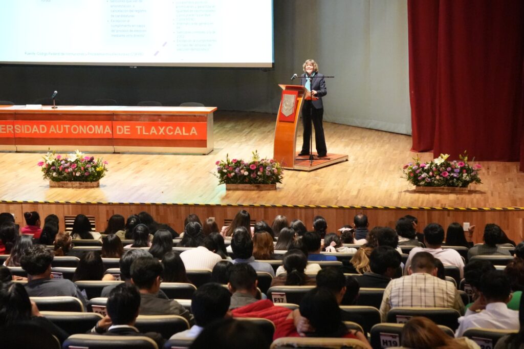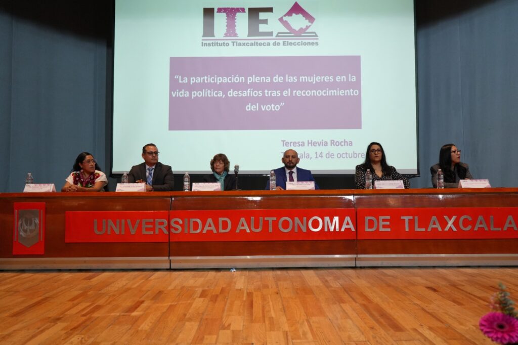 Previo a esta conferencia, llevada a cabo en el Teatro Universitario de la Universidad Autónoma de Tlaxcala (UATx) la Consejera Electoral, Janet Cervantes Ahuatzi, presidenta de la Comisión de Igualdad de Género y No discriminación del ITE, señaló que el derecho de votar y ser electas no es un privilegio, sino resultado de la lucha incansable de generaciones de mujeres como las sufragistas, activistas y pioneras.