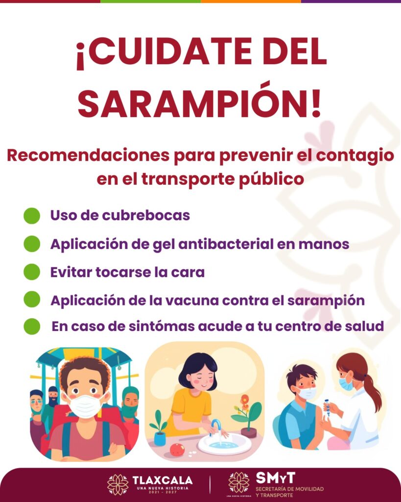 La Secretaría de Movilidad y Transporte (SMyT) exhorta a las personas concesionarias, operadoras y usuarias del servicio de transporte público en sus diferentes modalidades a fortalecer las acciones de prevención en materia de salud, ante el aumento de enfermedades respiratorias propias de la temporada.