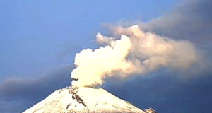 Volcán Popocatépetl amanece con fumarola de vapor de agua
