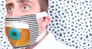 Crean cubrebocas con depósito de cerveza integrado